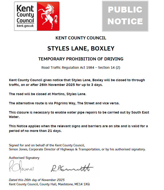 SENT ON BEHALF OF KCC- STYLES LANE, BOXLEY 26/11/2025 Additional Documents STYLES LANE BOXLEY - 26 NOV.png